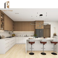 Cao cấp không khung óc chó MDF gỗ tùy chỉnh sang trọng hiện đại tủ bếp cho ngôi nhà